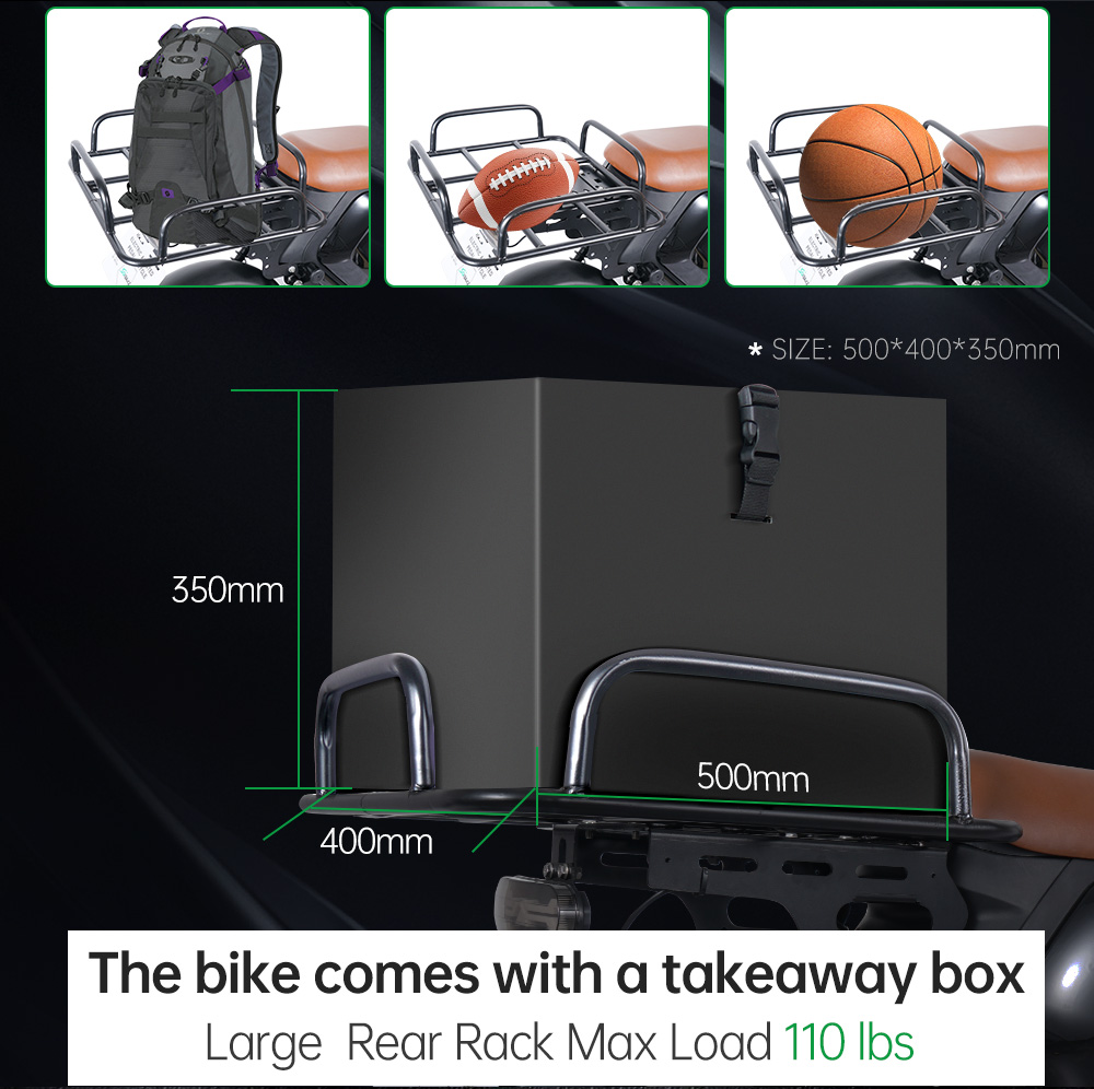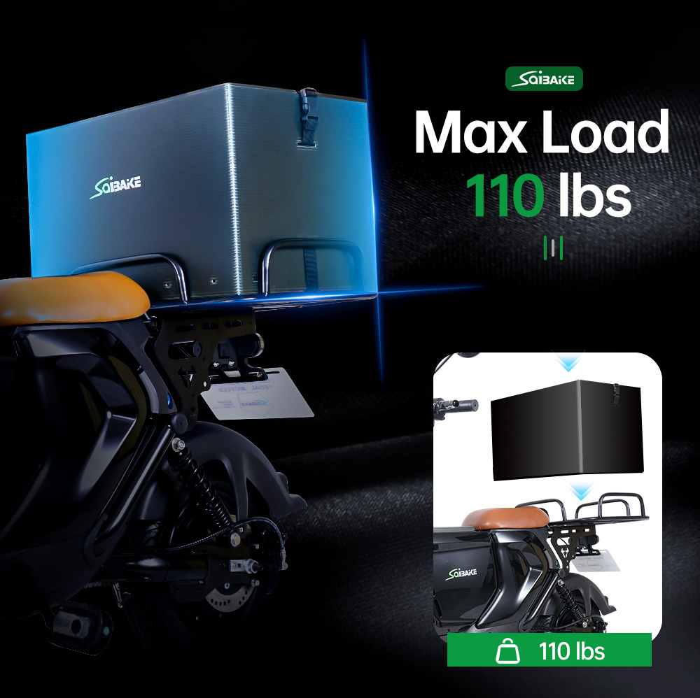 UK Stock N8 48V 800W 34MPH Cargo E-Bike 440lbs Cargo Capacity 48V 50Ah/100Ah Single/Dual Battery with Rear Rack & Basket
